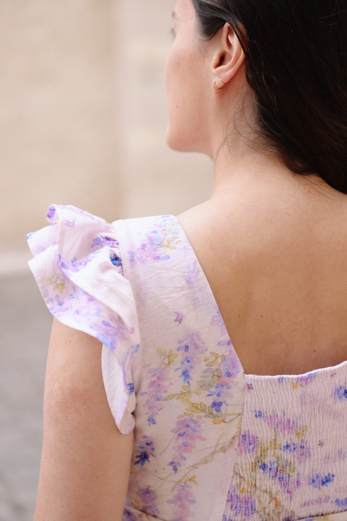J’ai pris les pièces smockées en fourreau pour qu’elles soient bien stabilisées mais vous pouvez faire un montage classique de corsage doublé (comme dans la vidéo) et surpiquer les coutures d’assemblage au niveau des pièces smockées, c’est plus facile.